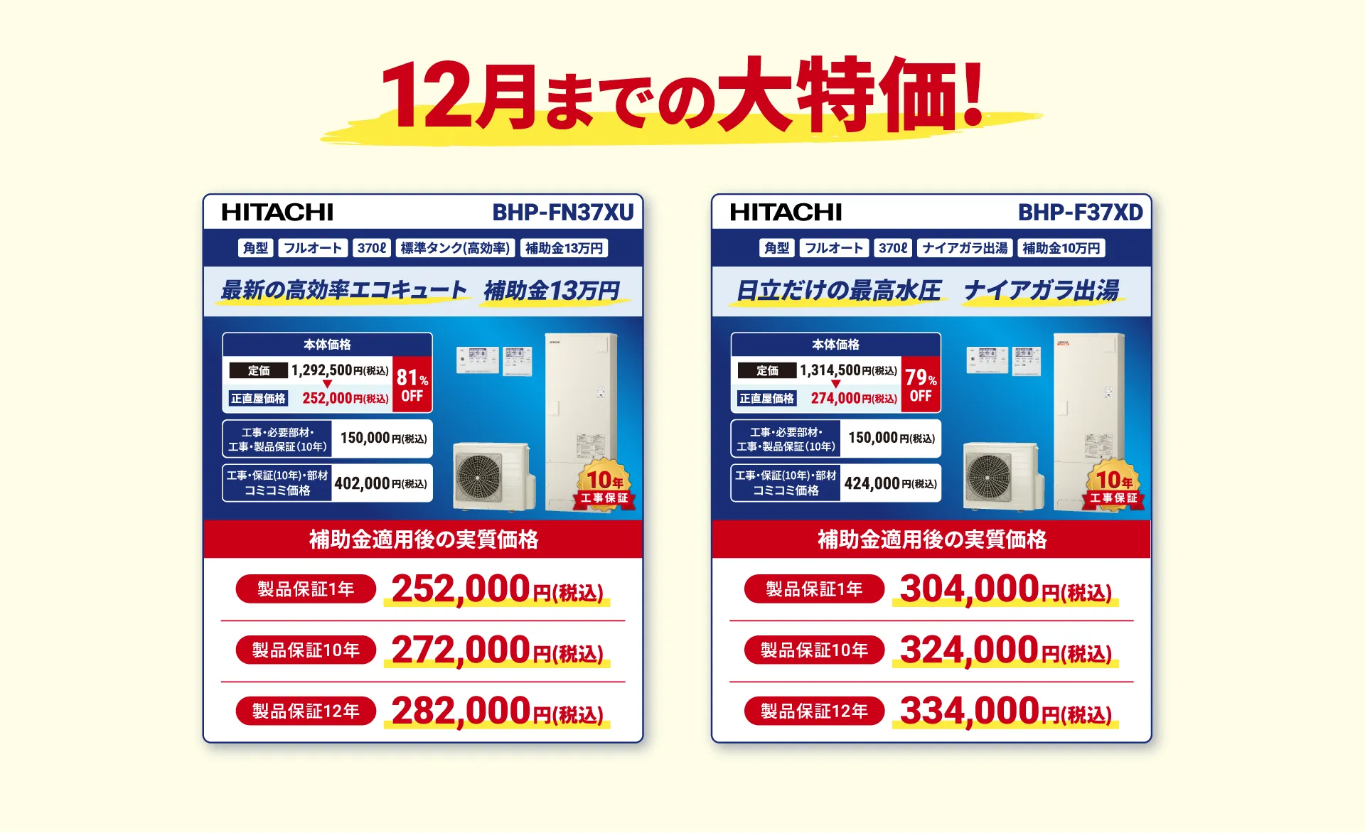 エコキュートお買い上げで最大17万円キャッシュバック!