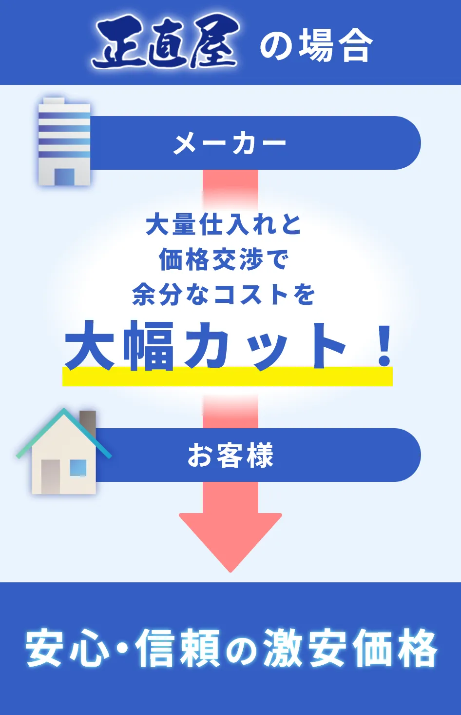 お支払いのタイミングは工事完了後の後払いです。通常は前払いによる施工が主流ですが、不安に感じるお客様も多くいらっしゃいましたので、正直屋は後払いに対応致しました!さらにカード払いもできるので、安心してお買い求めいただけます。